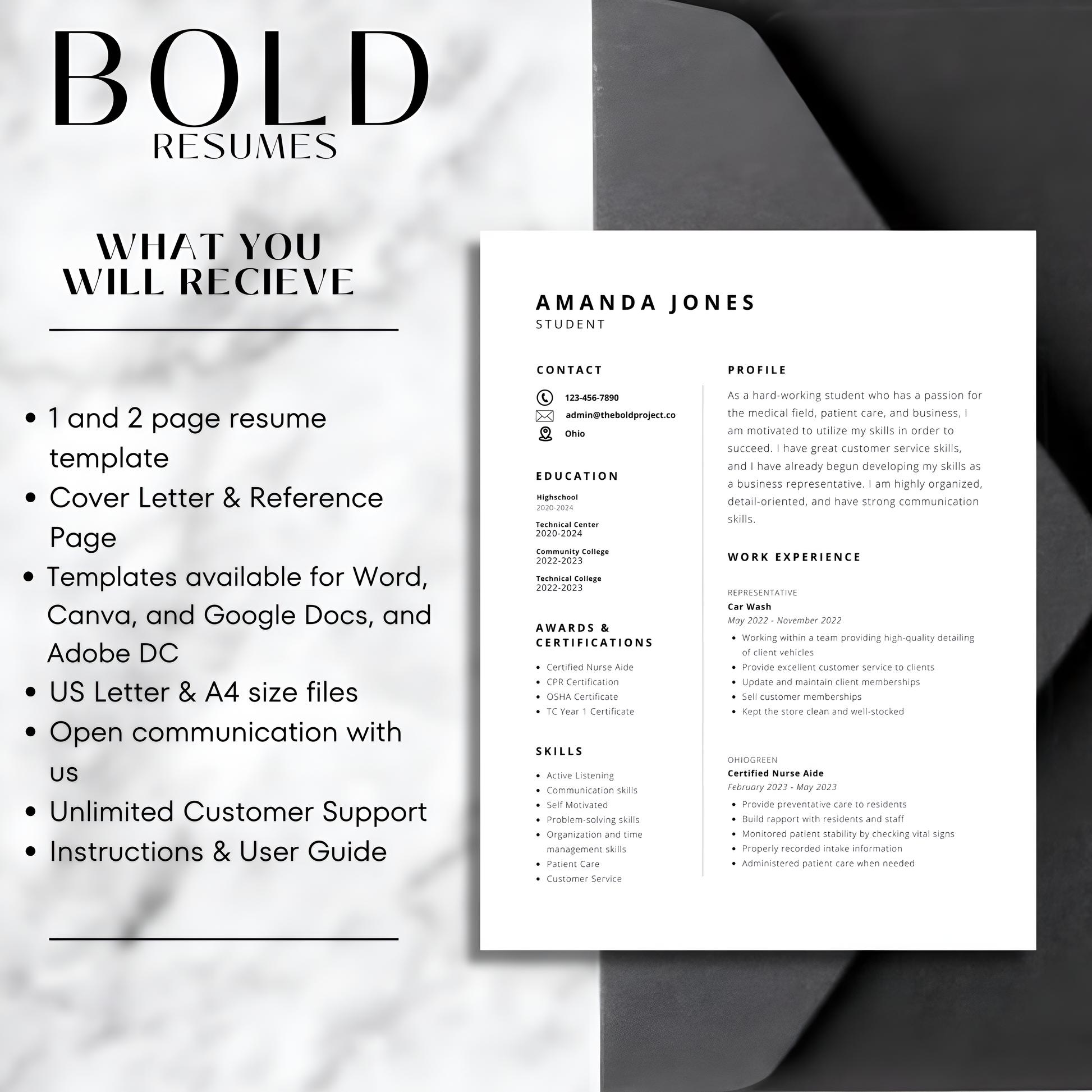 - You will receive a file once purchased containing all formats of Resume, Cover Letter, and Reference Sheet in the formats below